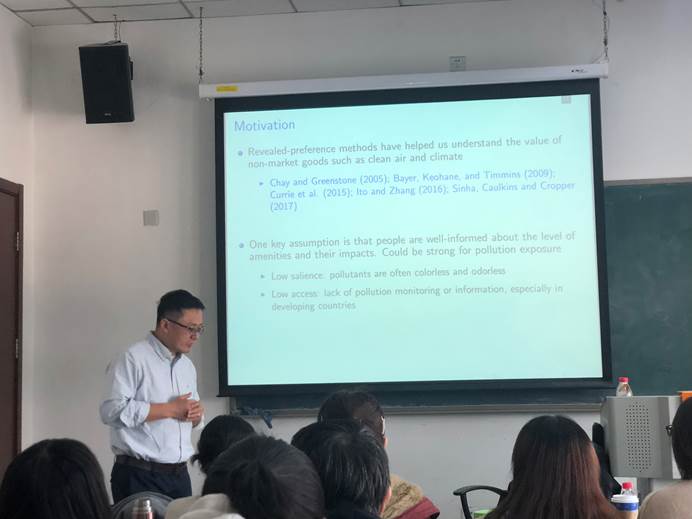 2019年3月8日下午,康奈尔大学讲席教授李善军老师应必赢中国官方网站邀请,在沙河校区学院主教402教室开展了主题为“TheValue of Pollution Information: Evidence from China’s Air Quality Disclosure”的讲座。会议由必赢中国官方网站院长助理黄乃静老师主持,校内多位老师以及40余名博士生和硕士生参加。